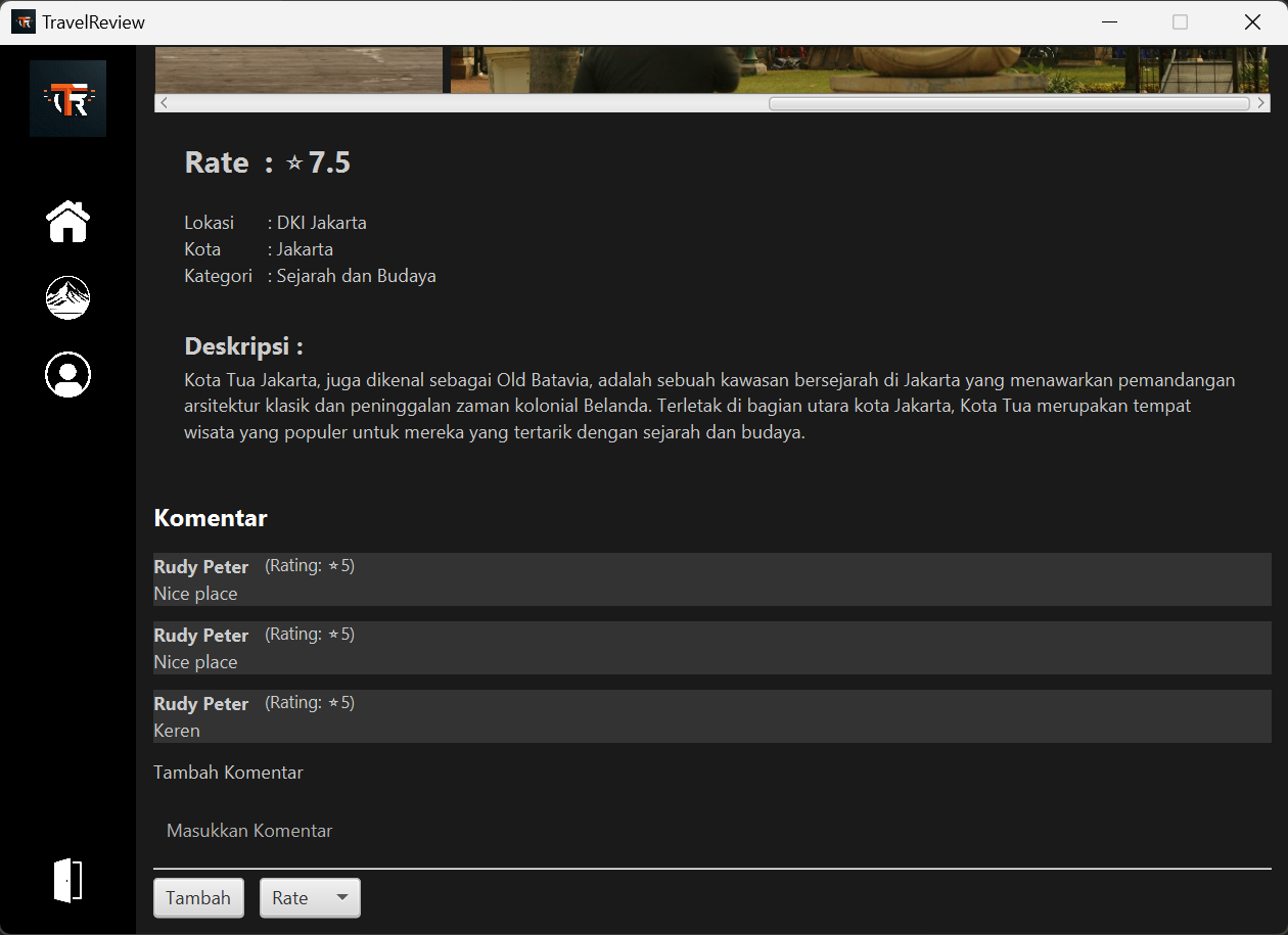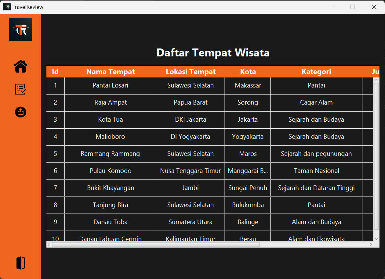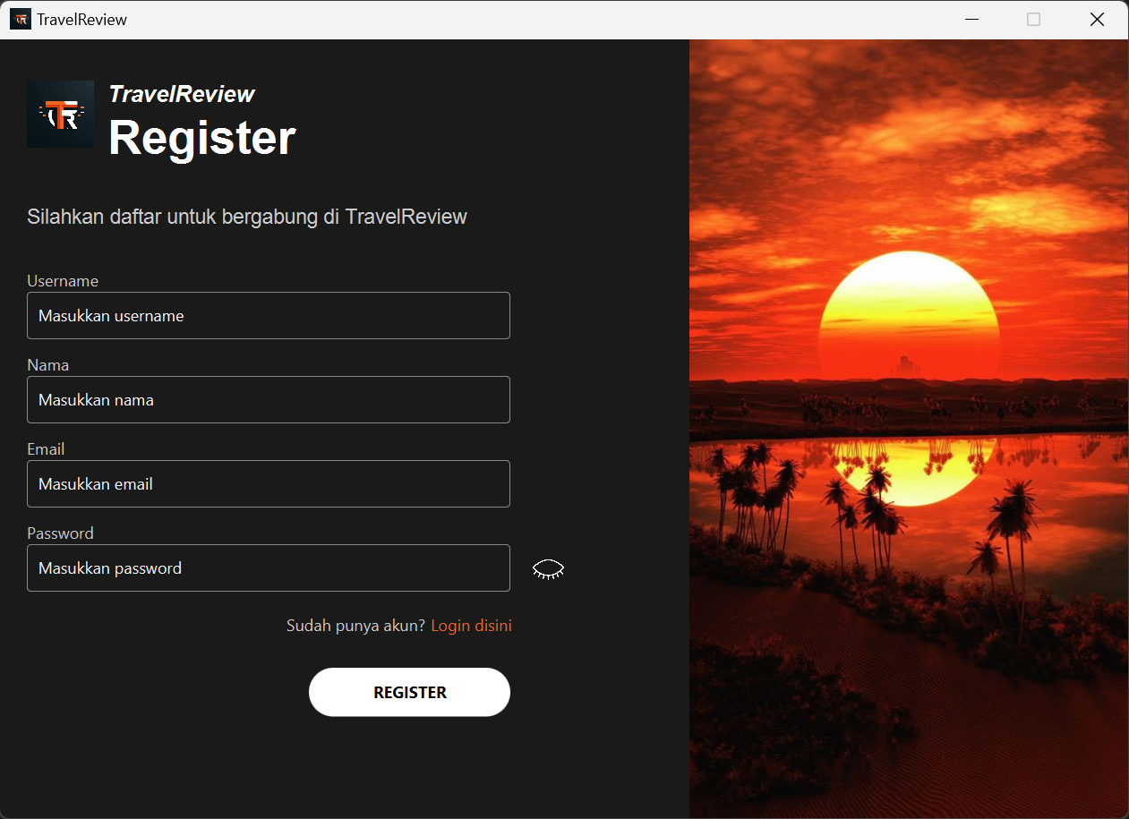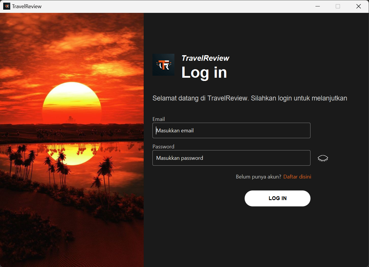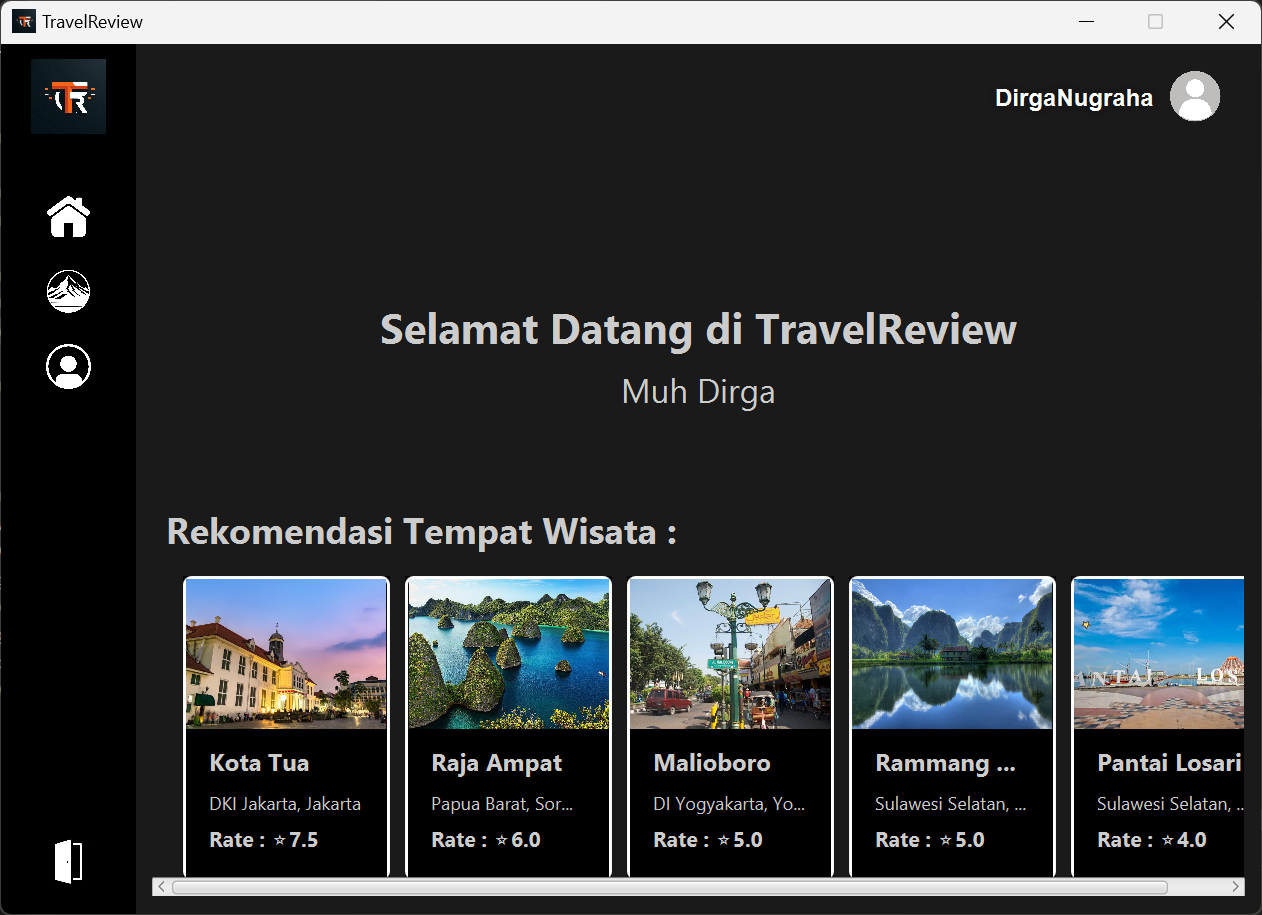TravelReview adalah aplikasi desktop berbasis JavaFX yang dirancang untuk membantu wisatawan Indonesia menemukan tempat wisata terbaik, memberikan rating, serta menulis ulasan tentang pengalaman mereka.